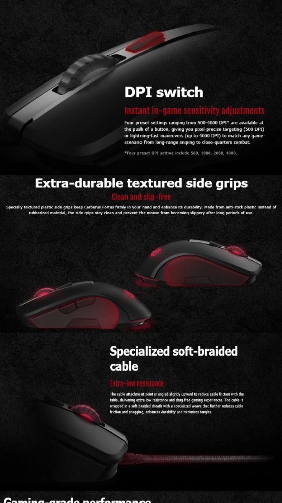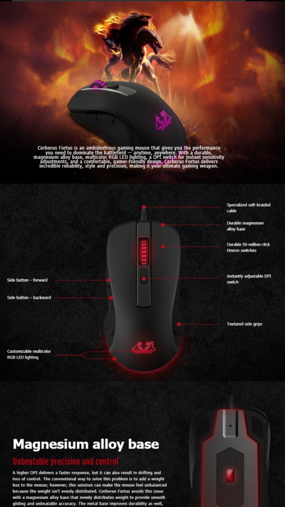 - Multicolor RGB LED lighting and a DPI switch enable instant style and sensitivity adjustments without pausing the game