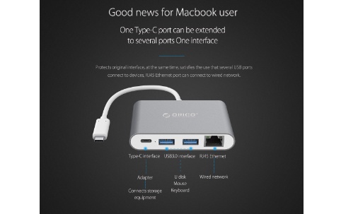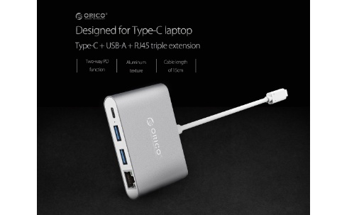Best Bargain – ORICO Aluminum Alloy Type-C to RJ45 / Type-C / USB3.0-A * 2 Adapter (RCR2A)